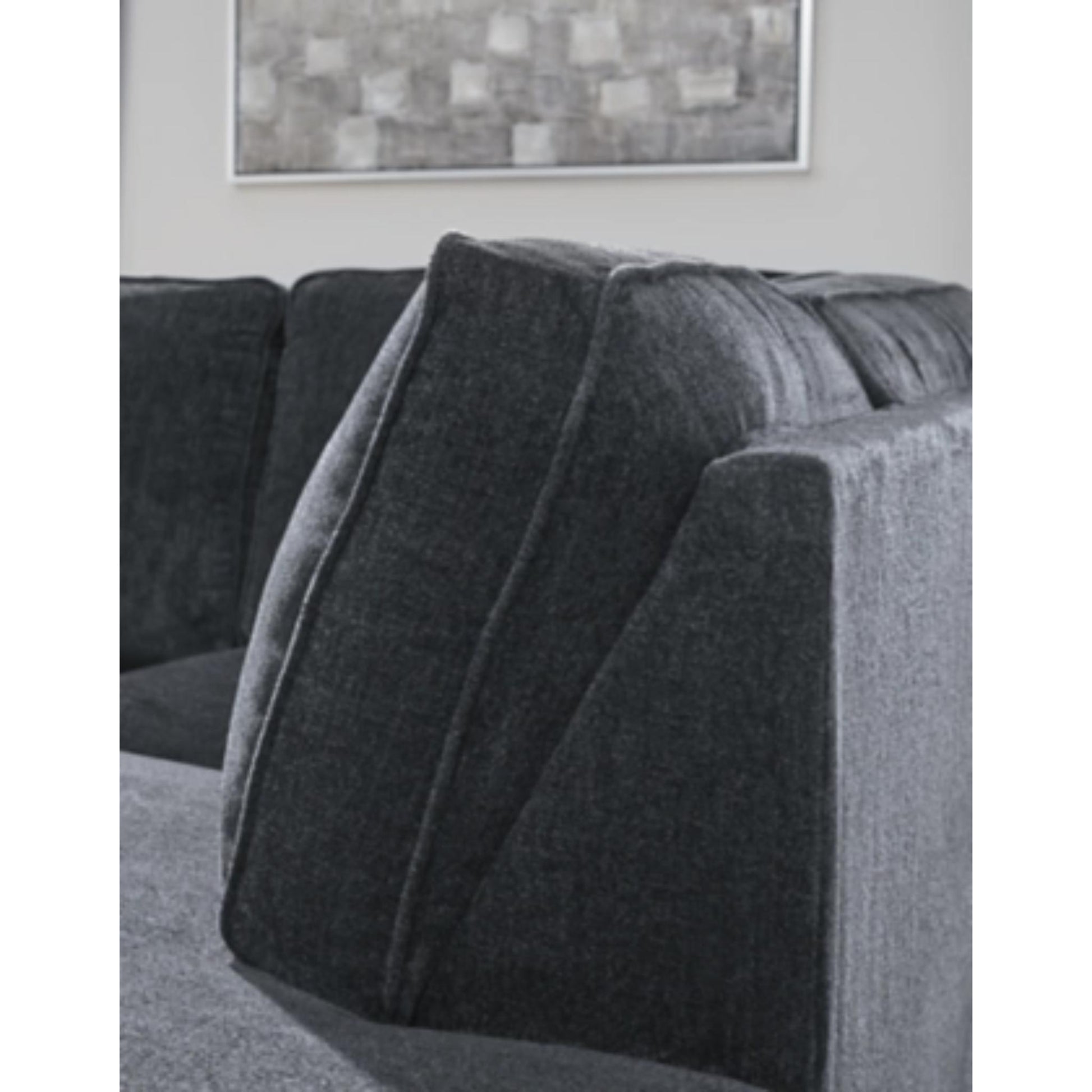 If style is the question, then this sleeper sectional is the answer. Sporting clean lines and sleek track arms, the decidedly contemporary profile is enhanced with plump cushioning and a chenille-feel upholstery that's so pleasing to the touch. Sure to play well with so many color schemes, this sleeper sectional in richly neutral alloy includes a pair of understated floral pattern pillows for fashionably fresh appeal. Crafted of quality memory foam, the pull-out full mattress comfortably accommodates overnight guests.