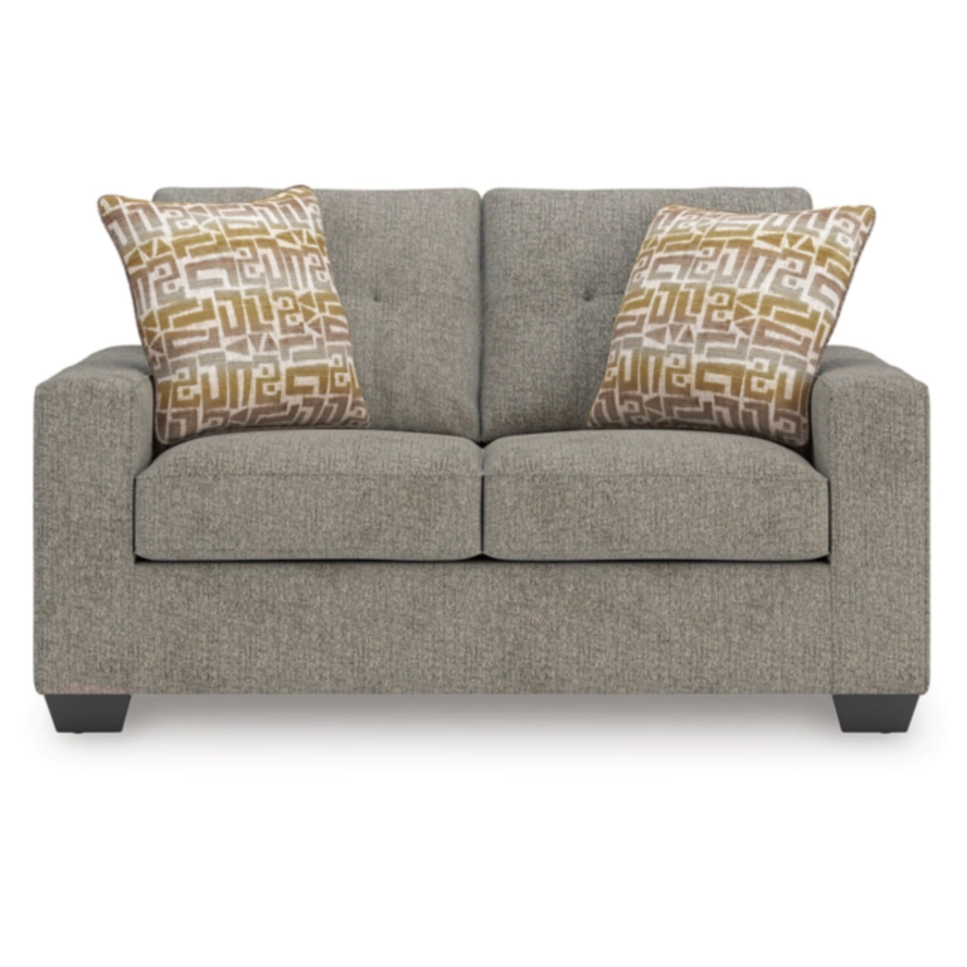 Sincere in its styling, this loveseat marries classic function with modern design elements for truly transitional appeal. Its track arms lend a contemporary vibe while soft, durable upholstery ups the comfort level. And with the loveseat's goes-with-anything neutral color, styling is made simple. All thatโs left for you to do is to sit back and relax.