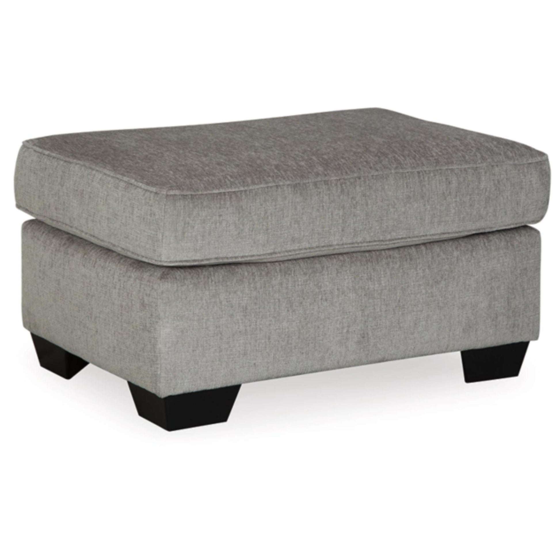 If style is the question, then this striking ottoman is the answer. Its decidedly contemporary profile is enhanced with plump cushioning and a chenille-feel upholstery that's so pleasing to the touch. Rest assured, this ottoman in richly neutral alloy is sure to play well with so many color schemes.