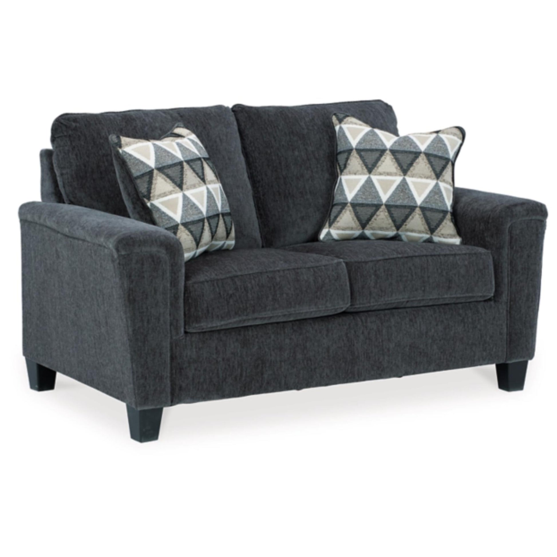 If you’re looking for a smokin’ hot look priced to entice, you’re sure to find this space-conscious, budget-conscious loveseat beautifully fits the bill. Covered in a smoke gray chenille upholstery loaded with plush texture, this less-is-more contemporary loveseat is dressed to impress with angled side profiling and track armrests wrapped with a layer of pillowy softness for that little something extra. Crisp and clean, the 2-over-2 cushion styling adds up to one sensational look.