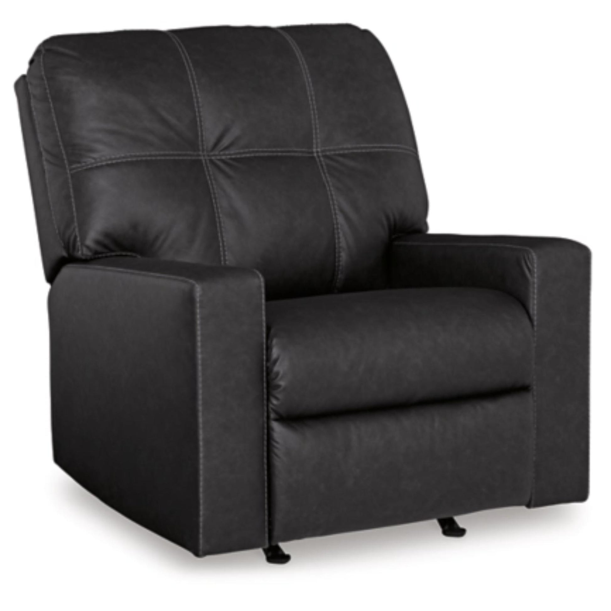 Everyday comfort meets versatile style in this rocker recliner. The handsome hue of the goes-with-anything faux leather takes away the stress of styling, expertly pairing with your existing aesthetic. And it's simple pull tab motion gets you reclining in no time. From kicking back on the weekends to relaxing post-work, living room lounging has never been so chic.