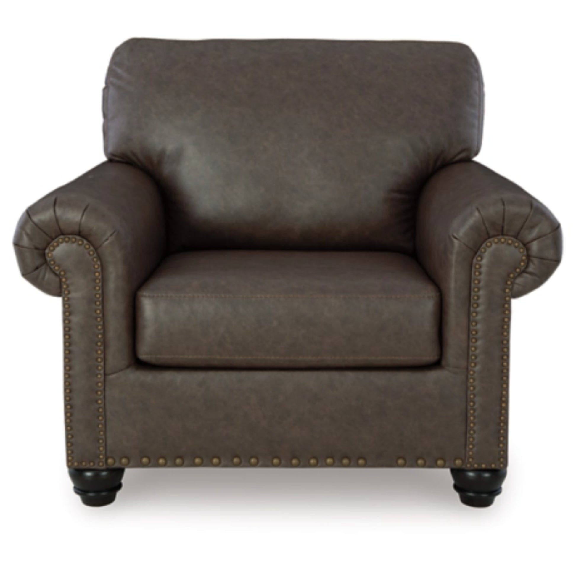 This chair marries classic character with a contemporary attitude. Love the timeless look of leather? Its take on deep brown faux leather is versatile enough to pair with styles from traditional to modern, at a price that won’t break the bank. Details like nailhead trim and roll arms polish off the piece with flair.