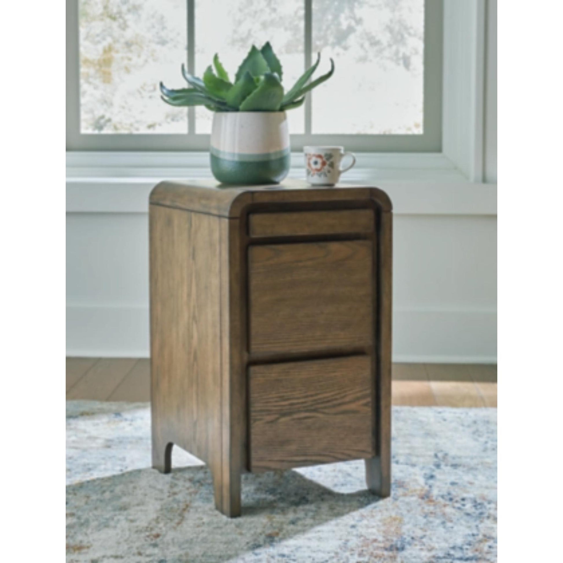 In the market for furniture that combines contemporary form with smart functionality? Look no further than this accent table. Its drawers keep essentials within reach, while the pull-out tray easily holds nibbles and drinks. And its USB charging options make it easy to stay powered up. Hosting or lounging, this table has you covered in style.