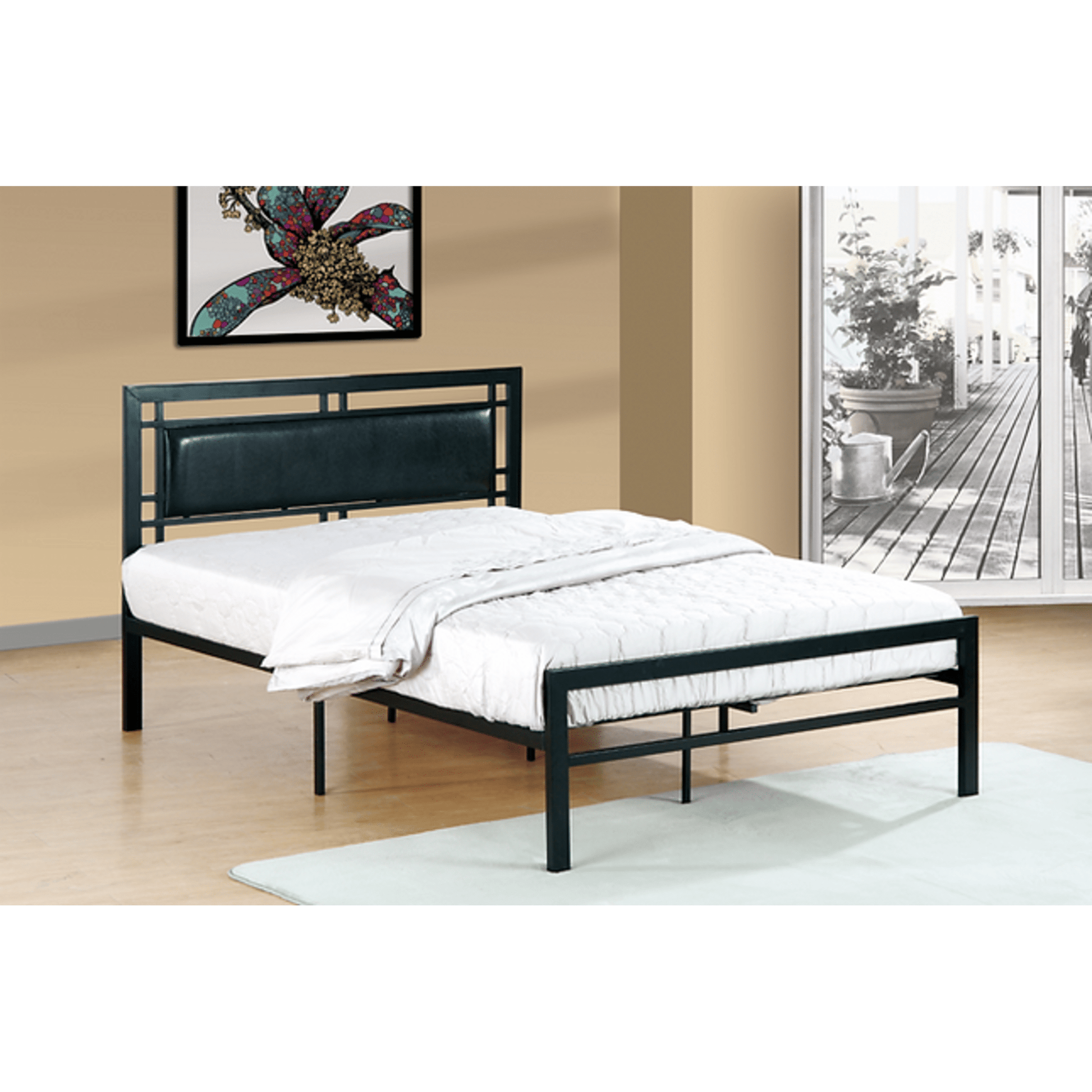 This metal platform bed effortlessly blends modern style with functional design. Featuring a beautiful faux leather inlay on the headboard, this bed adds a touch of sophistication to any bedroom. With metal slats and a center rail for enhanced support and stability, it eliminates the need for a foundation or box spring. Its simple, contemporary design with clean lines makes it a chic addition to any space, complementing various wall colors and decor styles. The sturdy, steel-crafted frame ensures durability, making this bed an ideal choice for those looking to save space without compromising on style.