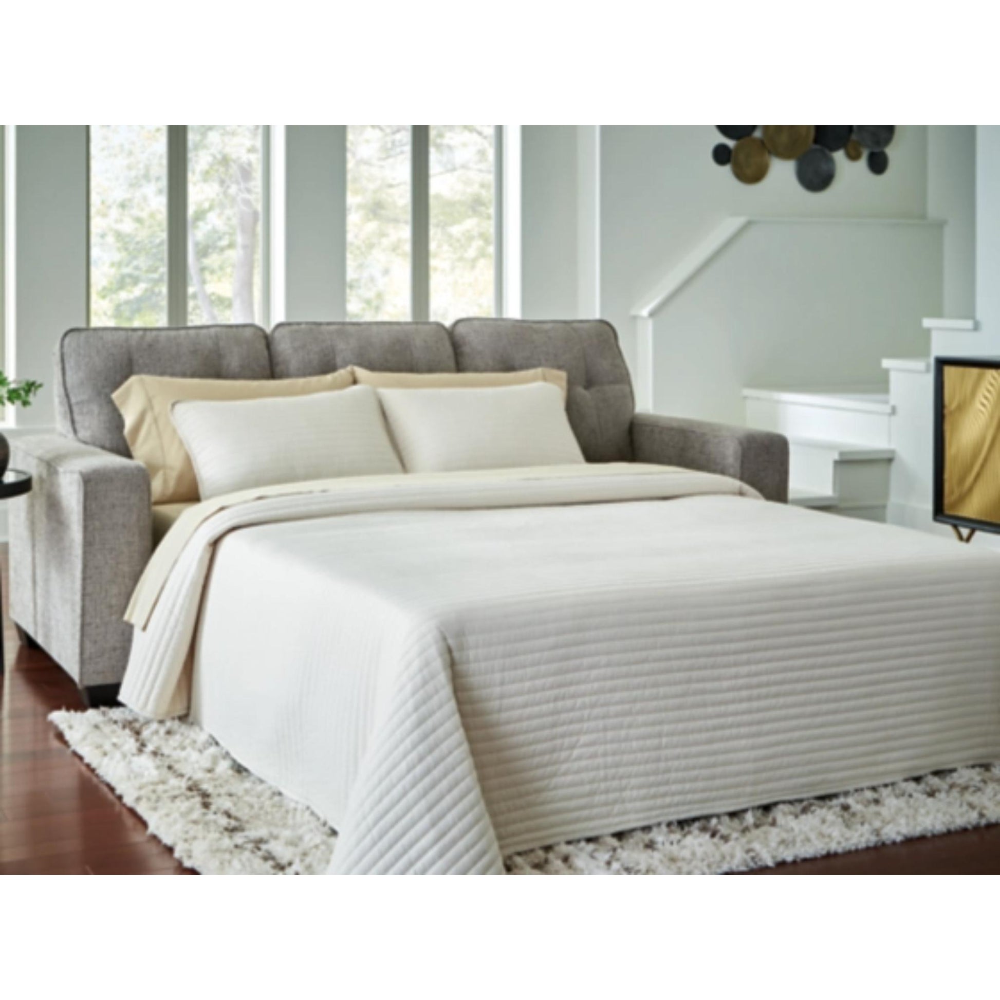 Sincere in its styling, this queen sofa sleeper marries classic function with modern design elements for truly transitional appeal. Its track arms lend a contemporary vibe while soft, durable upholstery ups the comfort level. Guests dropping by? The included memory foam mattress effortlessly provides extra sleeping space and neatly tucks away when not in use. And with the goes-with-anything neutral color, styling this sofa sleeper is made simple.