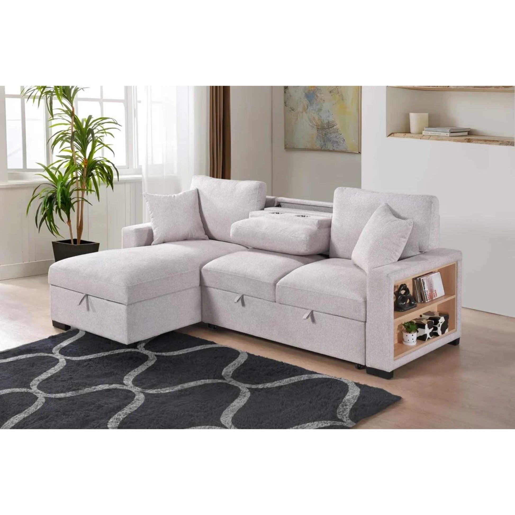 Experience the perfect blend of modern design and multifunctional comfort with the Pallas 2-Piece Pull-Out Sofa Bed Sectional. Thoughtfully crafted to suit today’s lifestyles, the Pallas brings both style and practicality into your living space. Upholstered in a timeless beige fabric with clean lines and smart built-in features, it’s ideal for relaxing, entertaining, or hosting overnight guests in comfort and style.