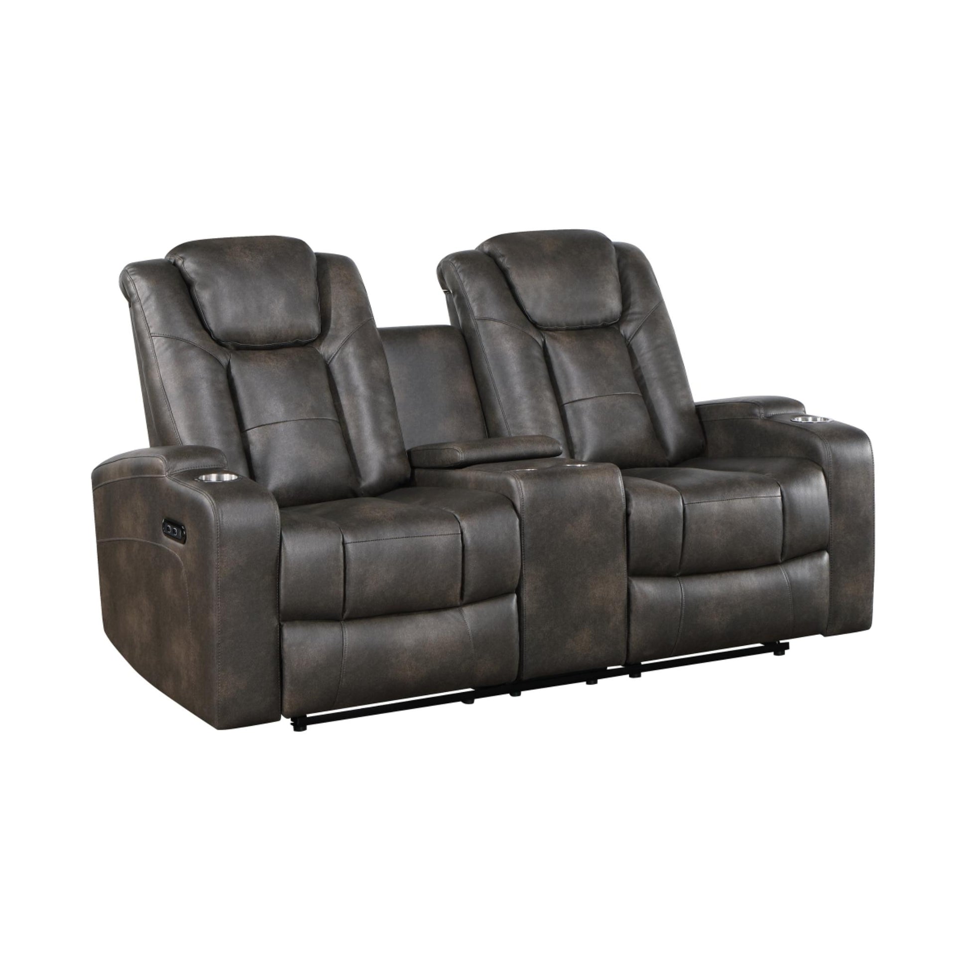 The McBride Power Reclining Loveseat delivers both comfort and practicality, making it a standout addition to any living room. Featuring double power-reclining seats, it allows you to customize your comfort at the touch of a button. The center console offers interior storage along with built-in cupholders, giving you a convenient place for remotes, snacks, and more. Finished in soft, breathable leather gel and styled with track arms and padded headrests, this loveseat blends modern aesthetics with everyday convenience.