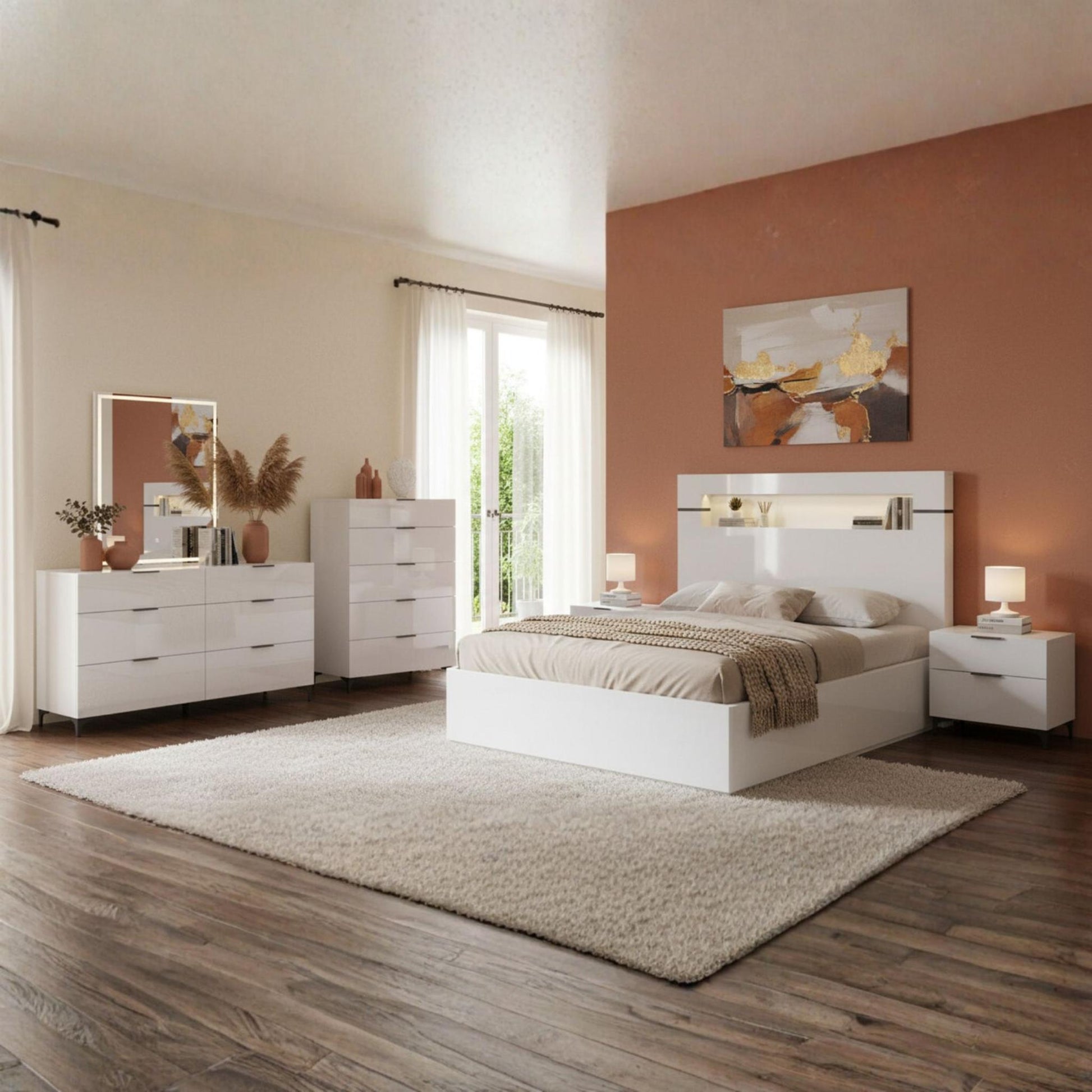 Transform your bedroom with this elegant modern bedroom set, designed with a premium lacquer gloss finish and a spacious hydraulic lift-up storage bed. This collection blends sleek contemporary styling with practical storage solutions to create a bright, organized, and luxurious sleep space.